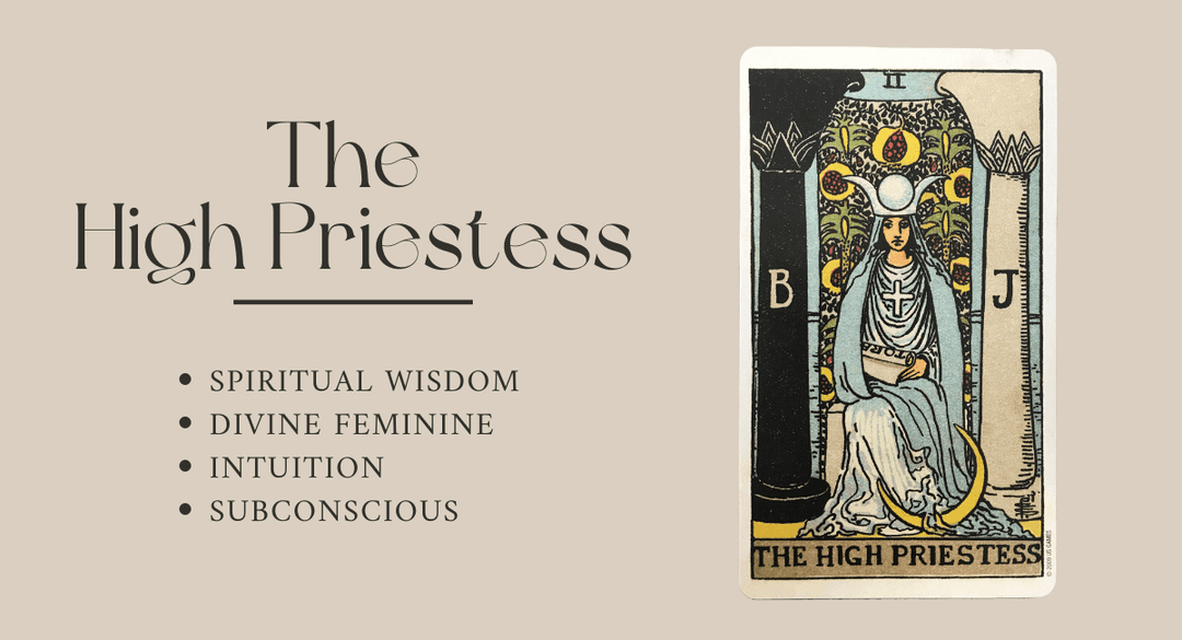 The High Priestess card, also known as the "Papess" or "Papess," is the second card in the Major Arcana of the tarot deck. The High Priestess card represents intuition, inner wisdom, and the unconscious mind. It is a card of mystery, secrets and the ability to access knowledge that is hidden from the conscious mind.